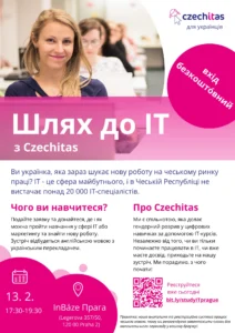 Naše partnerská organizace Czechitas přichází s další nabídkou, která by mohla zaujmout Vaše ukrajinské kolegyně profilující se v oboru IT.